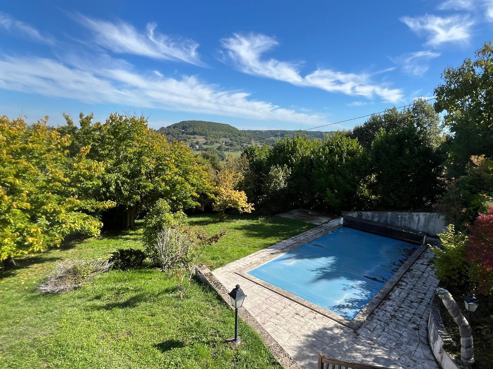 Extérieur : Piscine de 5 x 10 m, Terrain de 5 227 m² arboré et offrant une vue dégagée sur les environs
