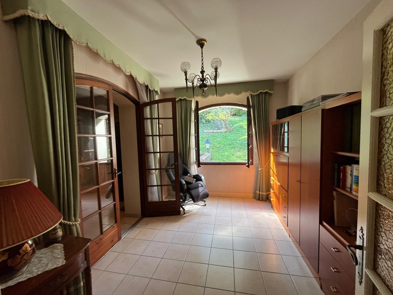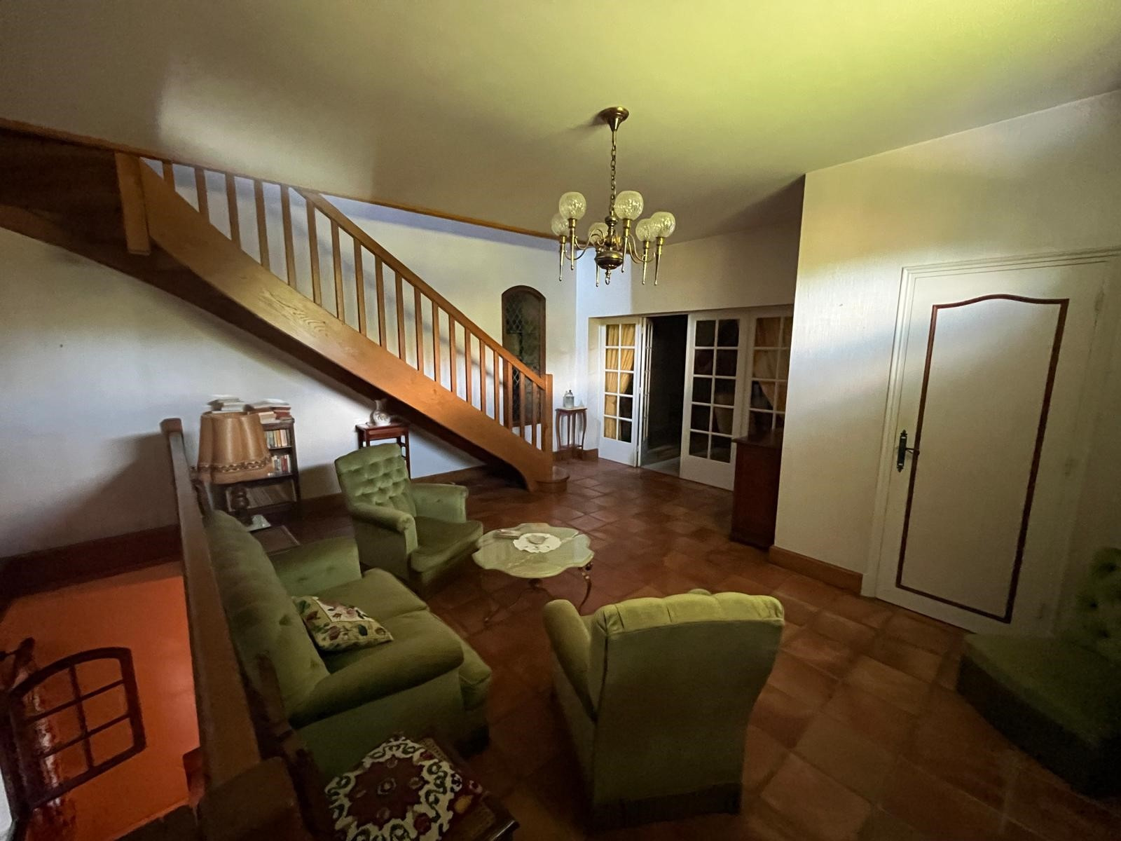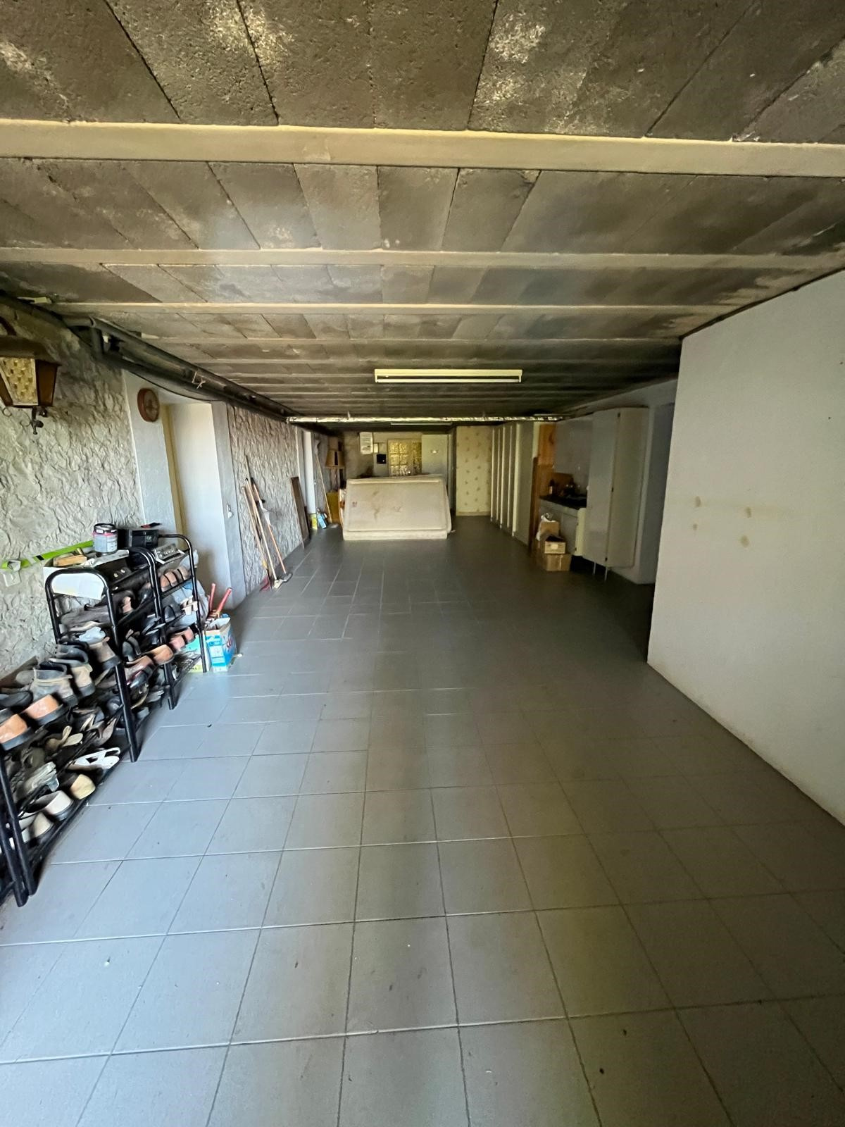 Au sous-sol (accessible par l’entrée/salon) : Chambre, Salle d’eau avec WC, Très grand garage avec débarras et chaufferie, Sous la terrasse : cuve à fuel et moteur de piscine