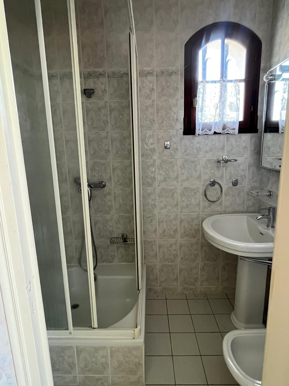 À l’étage : Chambre avec salle d’eau, WC indépendant, Grenier